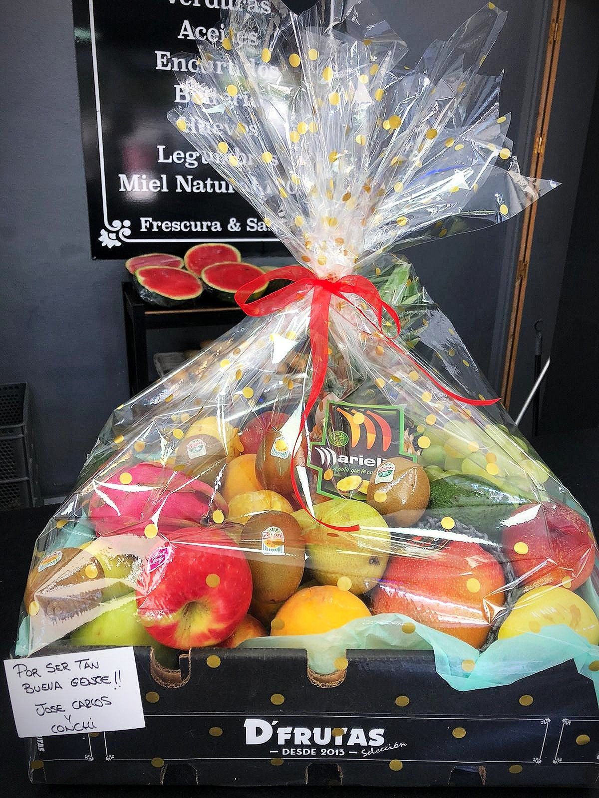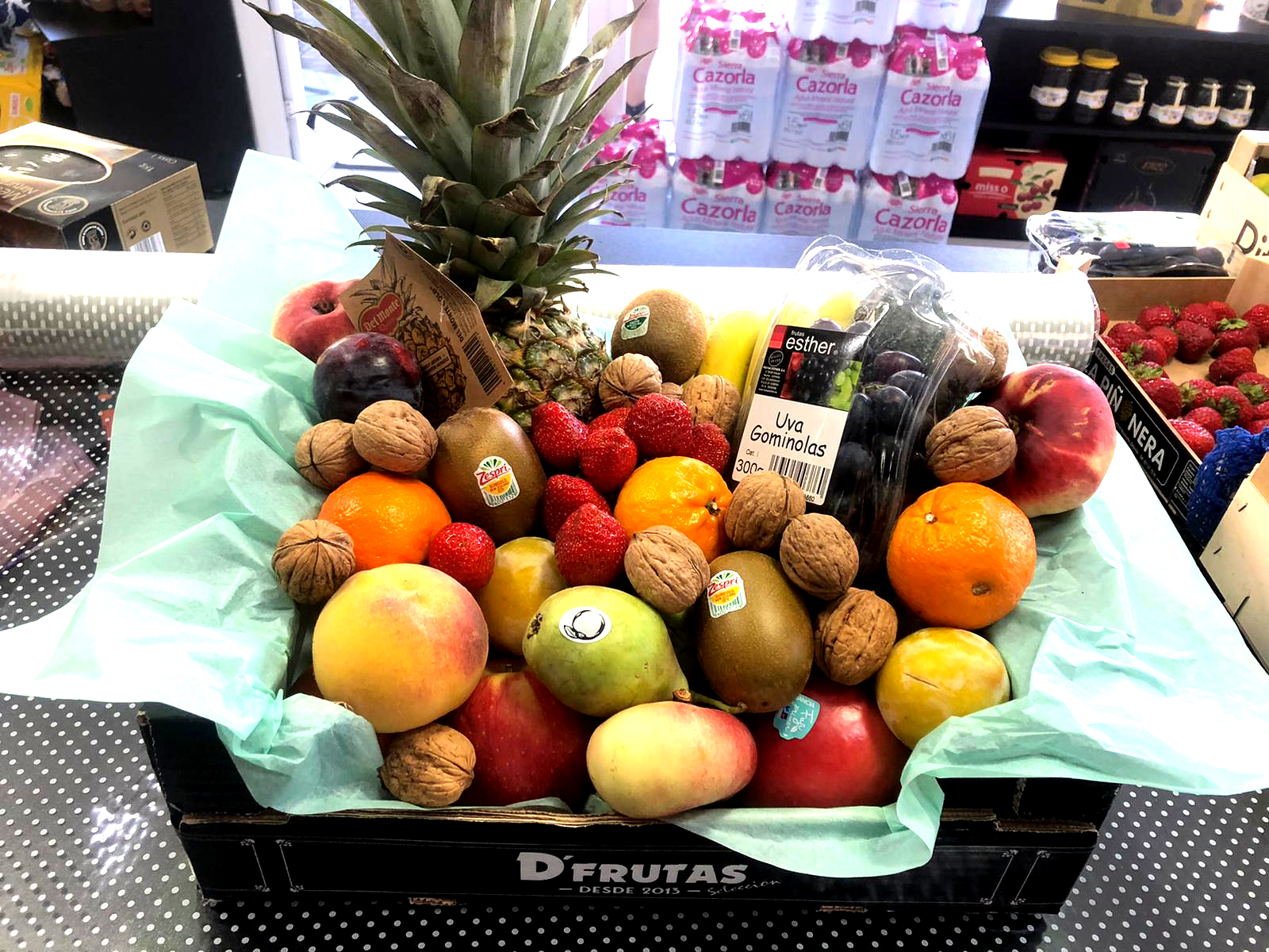 Estas fantásticas cajitas están formadas por la mejor selección de nuestros productos. En ella encontraras una gran variedad en frutas y productos delicatessen. Puedes personalizar tu cajita a tu gusto tanto en productos como decoración. Incluso puedes dejar una nota personalizada si lo deseas para dedicar a la persona a la que vaya dirigida.